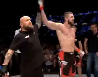 Wins the GCF Light Heavyweight title with a flying knee KO.